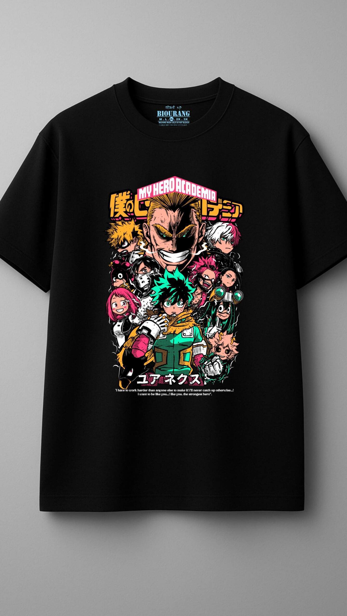 تیشرت مشکی طرح میدوریا یکی از محبوبترین آیتمهای مد برای طرفداران انیمه محبوب “مدرسه قهرمانانه من” و به خصوص شخصیت پرانرژی و تلاشگر میدوریاست. با طراحیهای جذاب و نمادین از این قهرمان جوان، این تیشرتها شما را به دنیای ابرقهرمانها و مبارزات نفسگیر میبرند.
